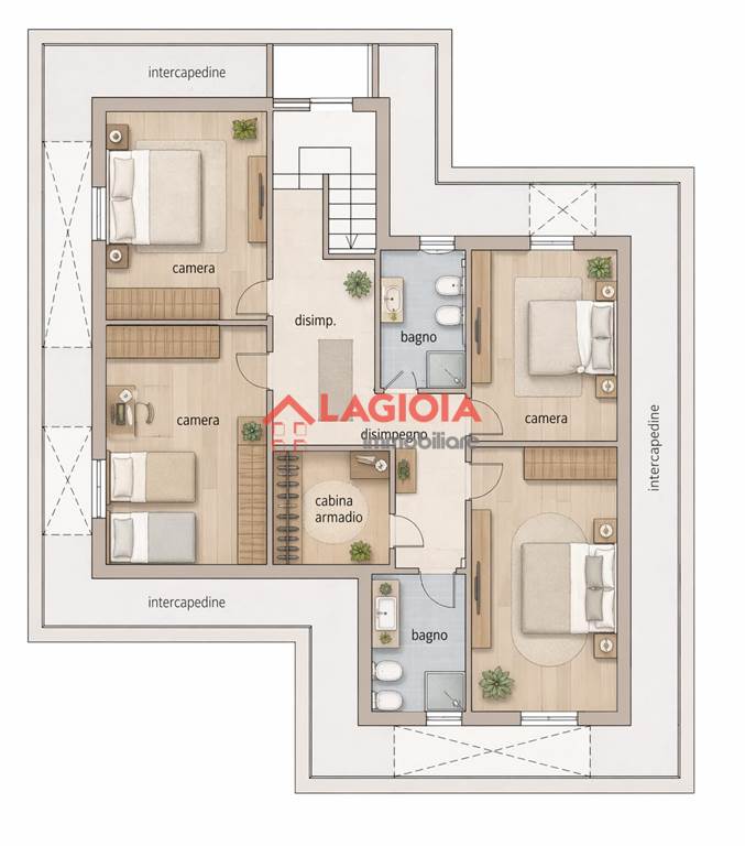 Il piano seminterrato accessibile tramite scala interna ospita una camera padronale con cabina armadio e bagno dedicato oltre ad altre tre camere ampie e confortevoli ed ulteriore bagno. Tutti gli ambienti sono dotati di porte-finestre che affacciano su un’intercapedine perimetrale, garantendo isolamento e luminosità.