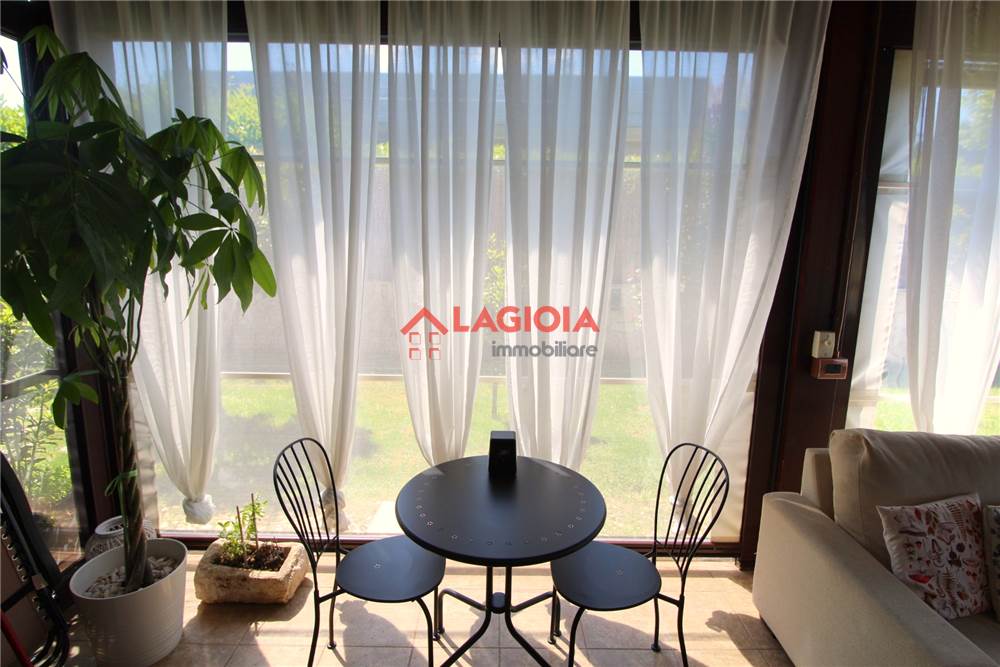 L’immobile si sviluppa al piano terra con ingresso su luminoso soggiorno a vista, bagno, una spaziosa cucina abitabile , sala da pranzo con camino e camera da letto. Si accede ad una suggestiva veranda chiusa perimetralmente da tende con zanzariere automatizzate apribili nelle calde sere estive . L’ambiente è inoltre riscaldato da una stufa a pellet rendendolo perfettamente vivibile anche durante la stagione autunno/inverno.